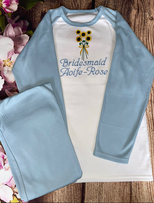 NEW Personalised Wedding Flower Girl Embroidered 100% Cotton Pyjamas - Flowergirl / Bridesmaid