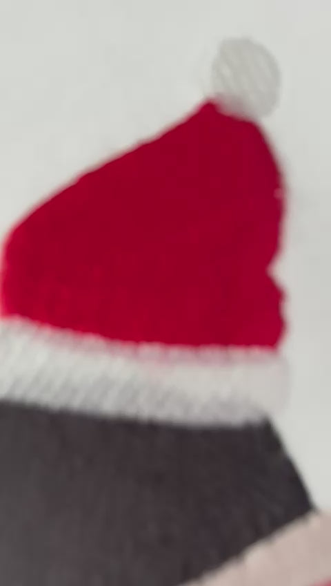A high quality soft pair of pyjamas which are embroidered with a cheeky red hoover design wearing a Christmas hat and personalised with your child's name.