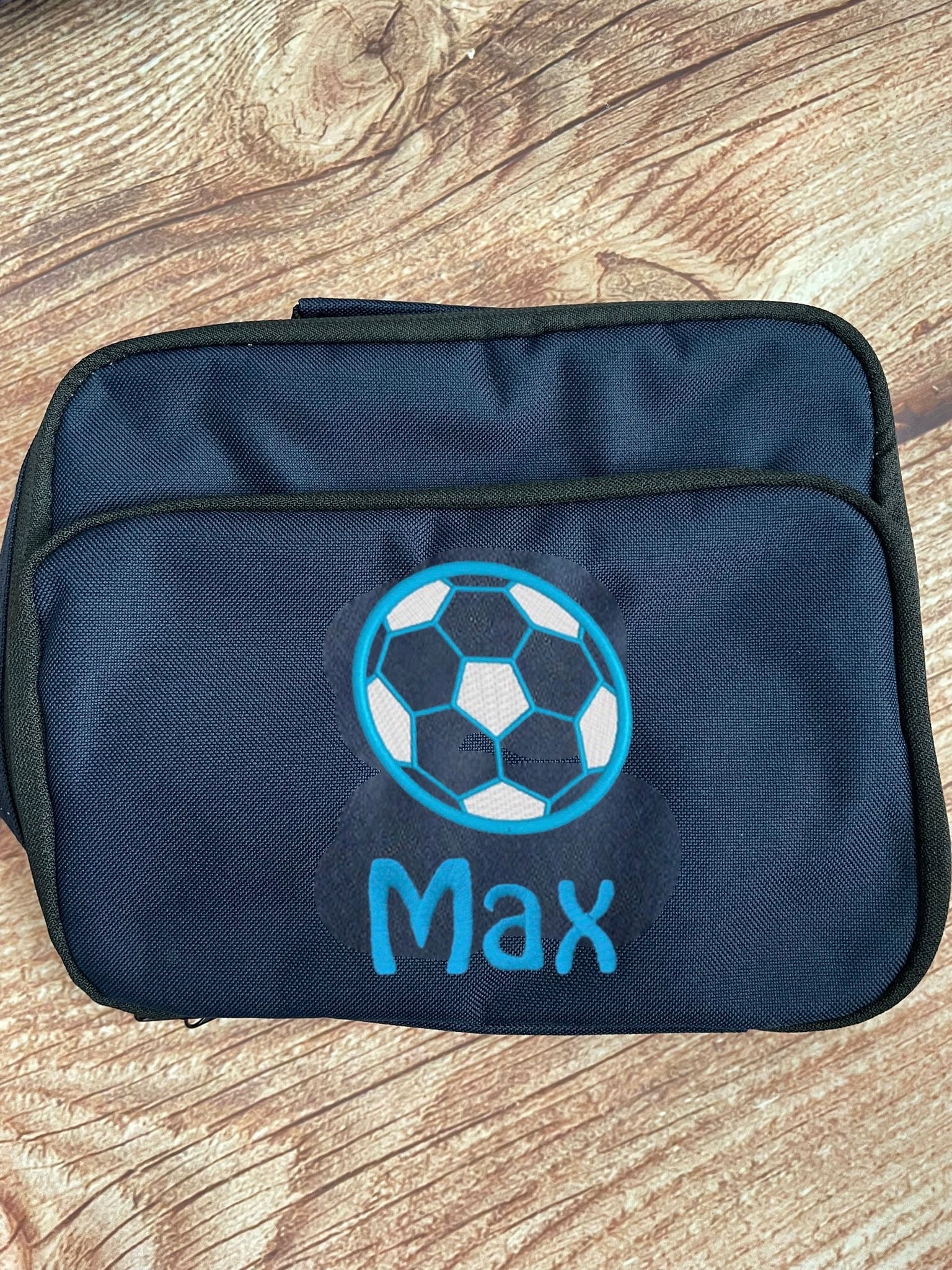 A great addition to any child's personalised school kit, these insulated lunch boxes are easily cleaned, strong and perfect for keeping lunch cold for hours. Embroidered with your Childs name or initials and a sporting motif of your choice.