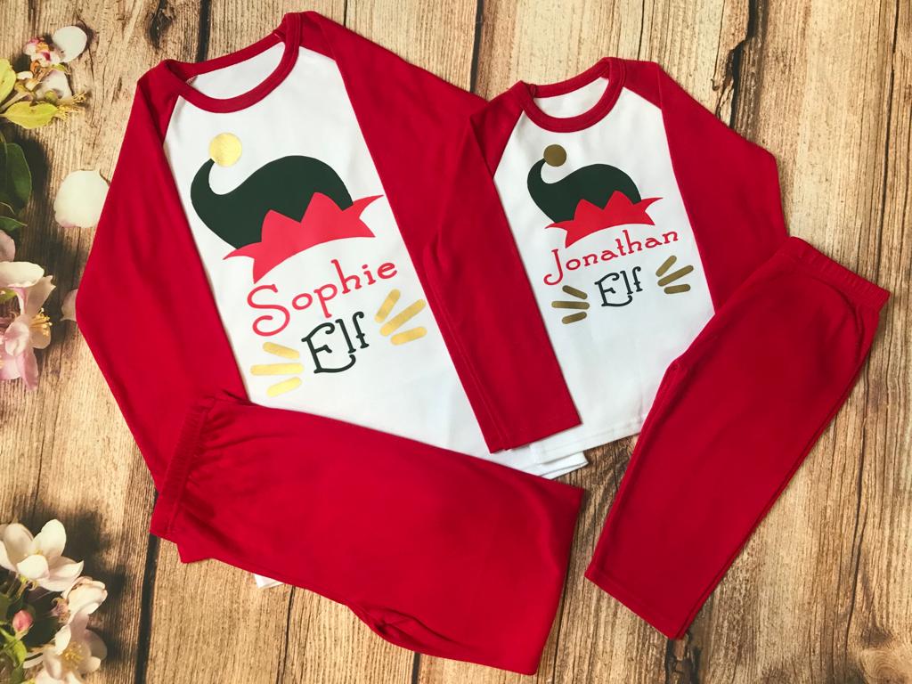 Elf Christmas pyjamas personalised with name. Matching, Gift, keepsake, high quality, soft, PJ's