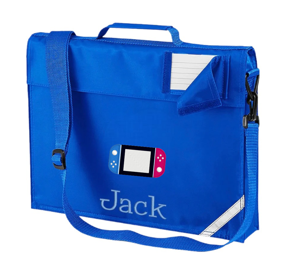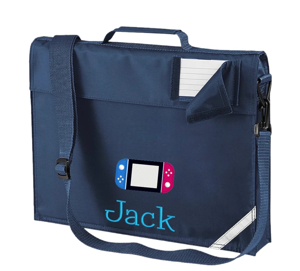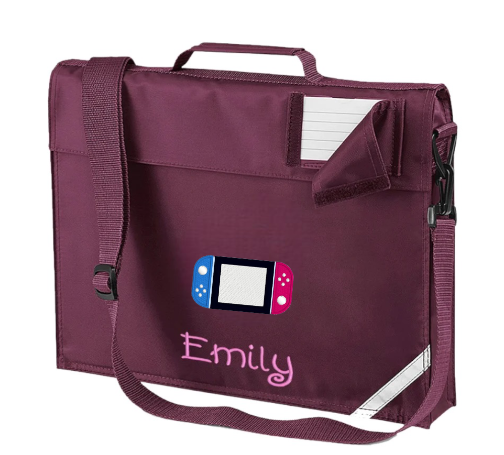 Embroidered and personalised with your Childs name and a Nintendo switch.