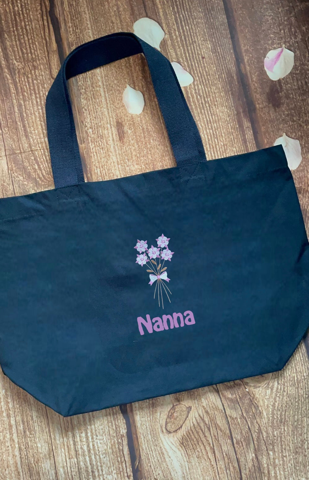 Embroidered flowers personalised canvas tote bag / Mothers Day present /birthday. Choice of flowers, perfect for Mum, Nanny / Granny