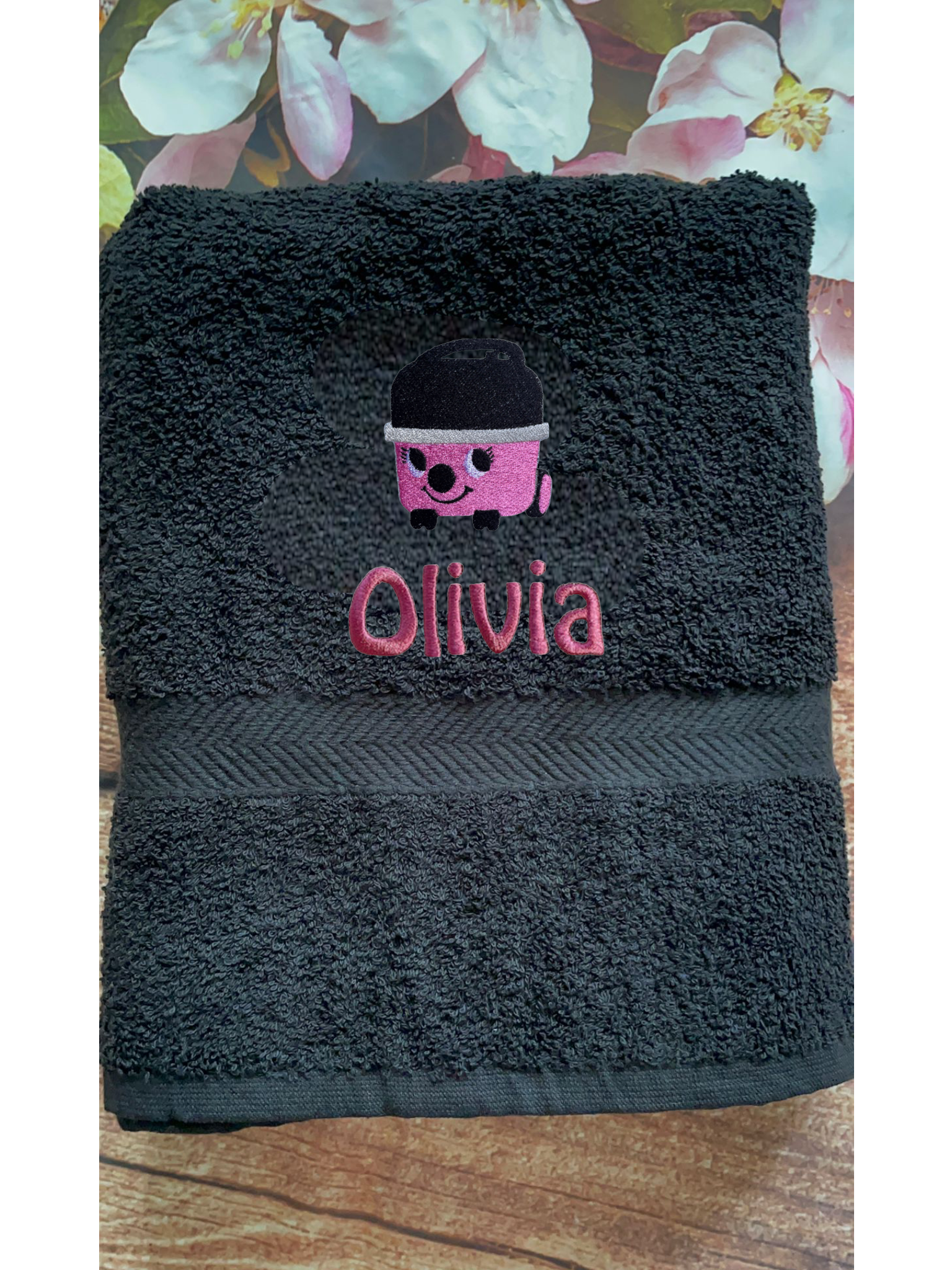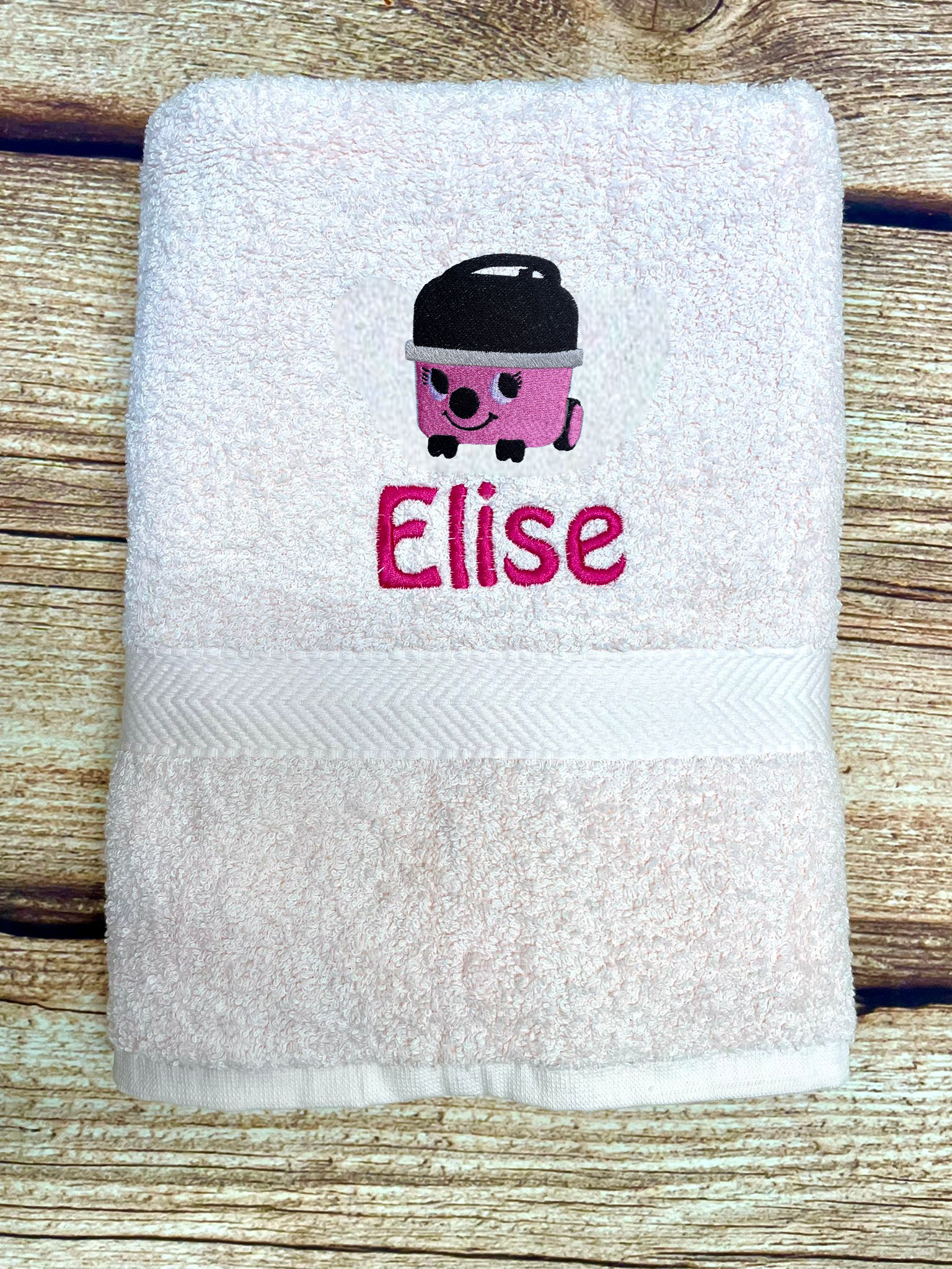 Embroidered personalised swimming or sports towel. Ideal gift // Pink hoover