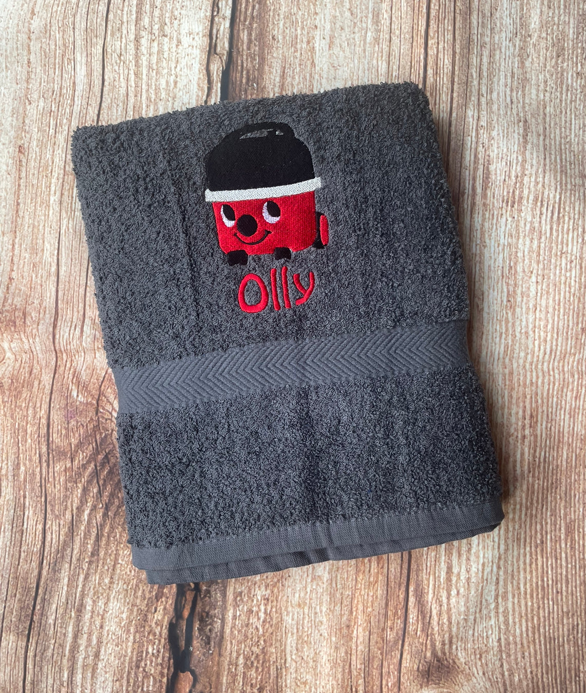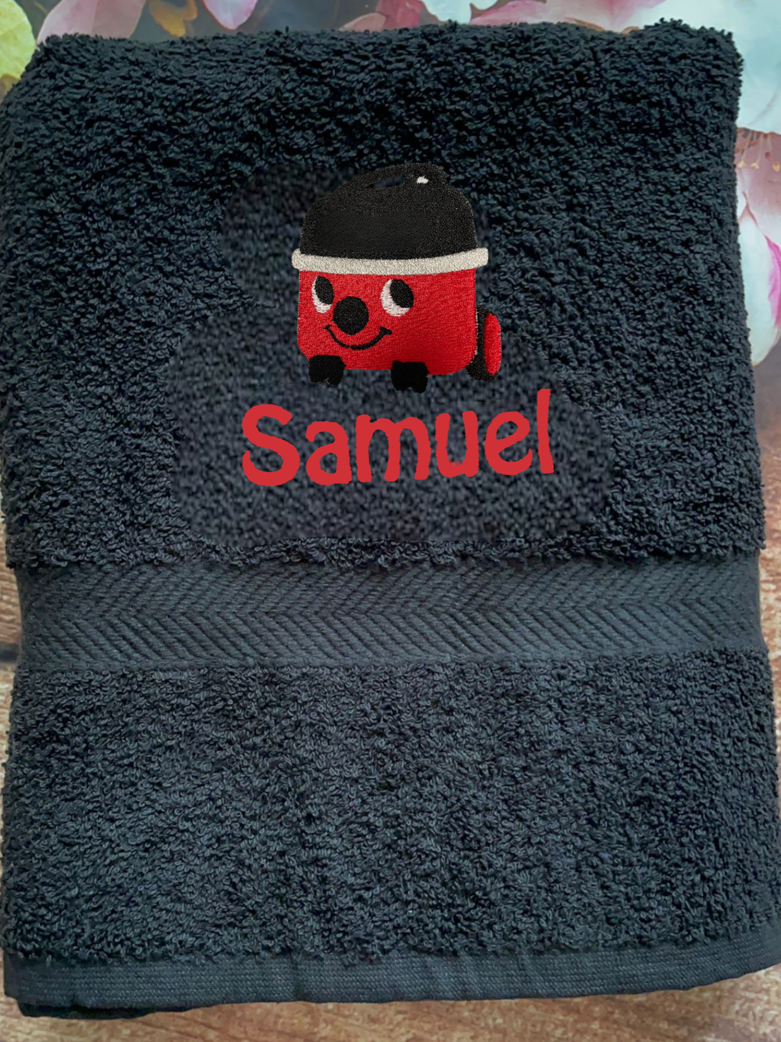 Embroidered personalised swimming or sports towel. Ideal gift // Red hoover