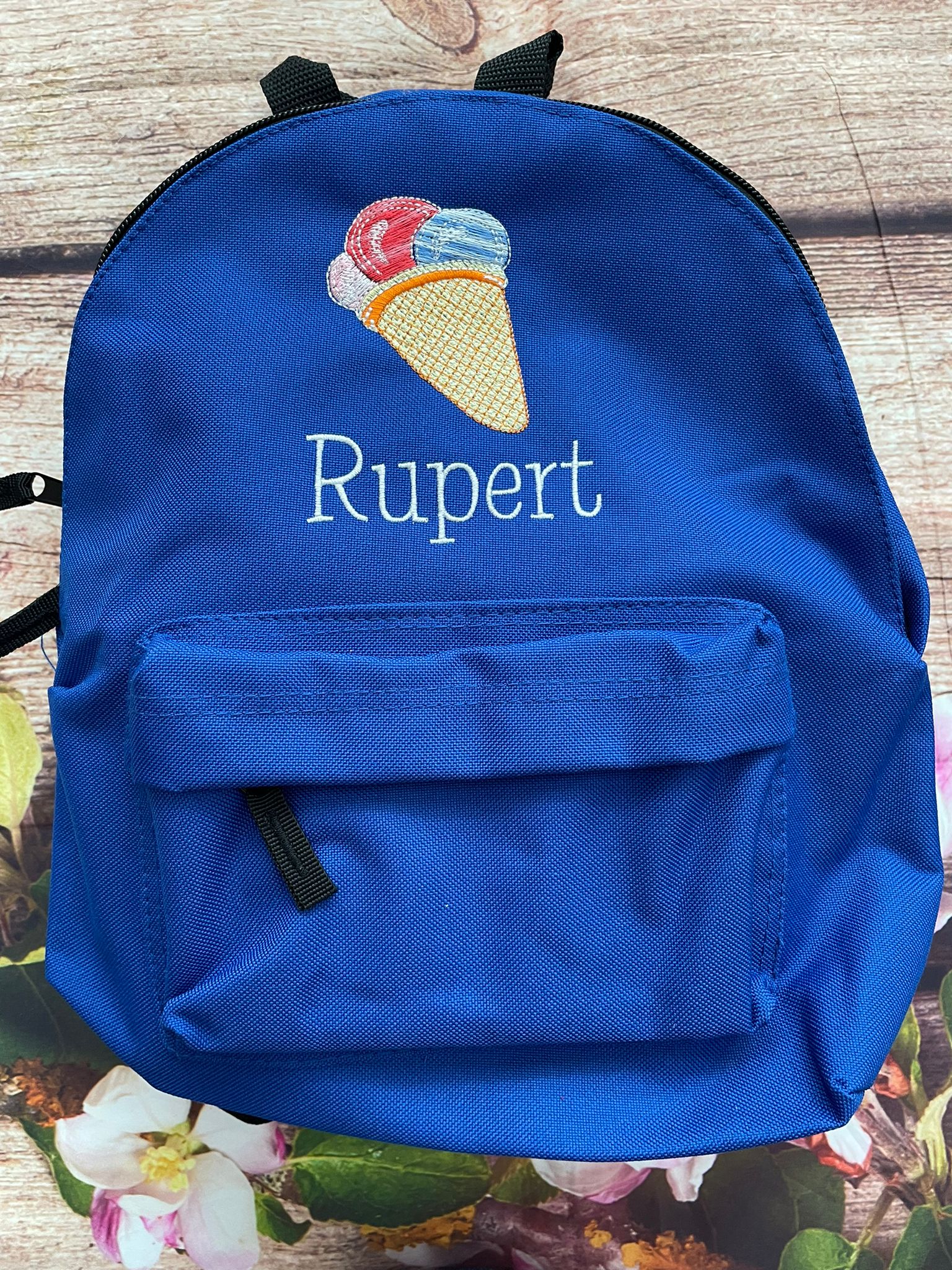 Available in Navy blue and Royal blue - personalise your bag with your Childs name and select from a wide selection of motif's.