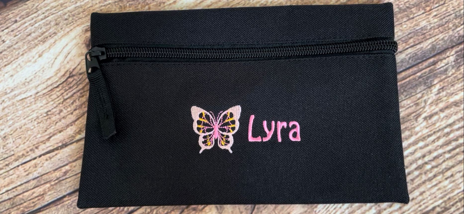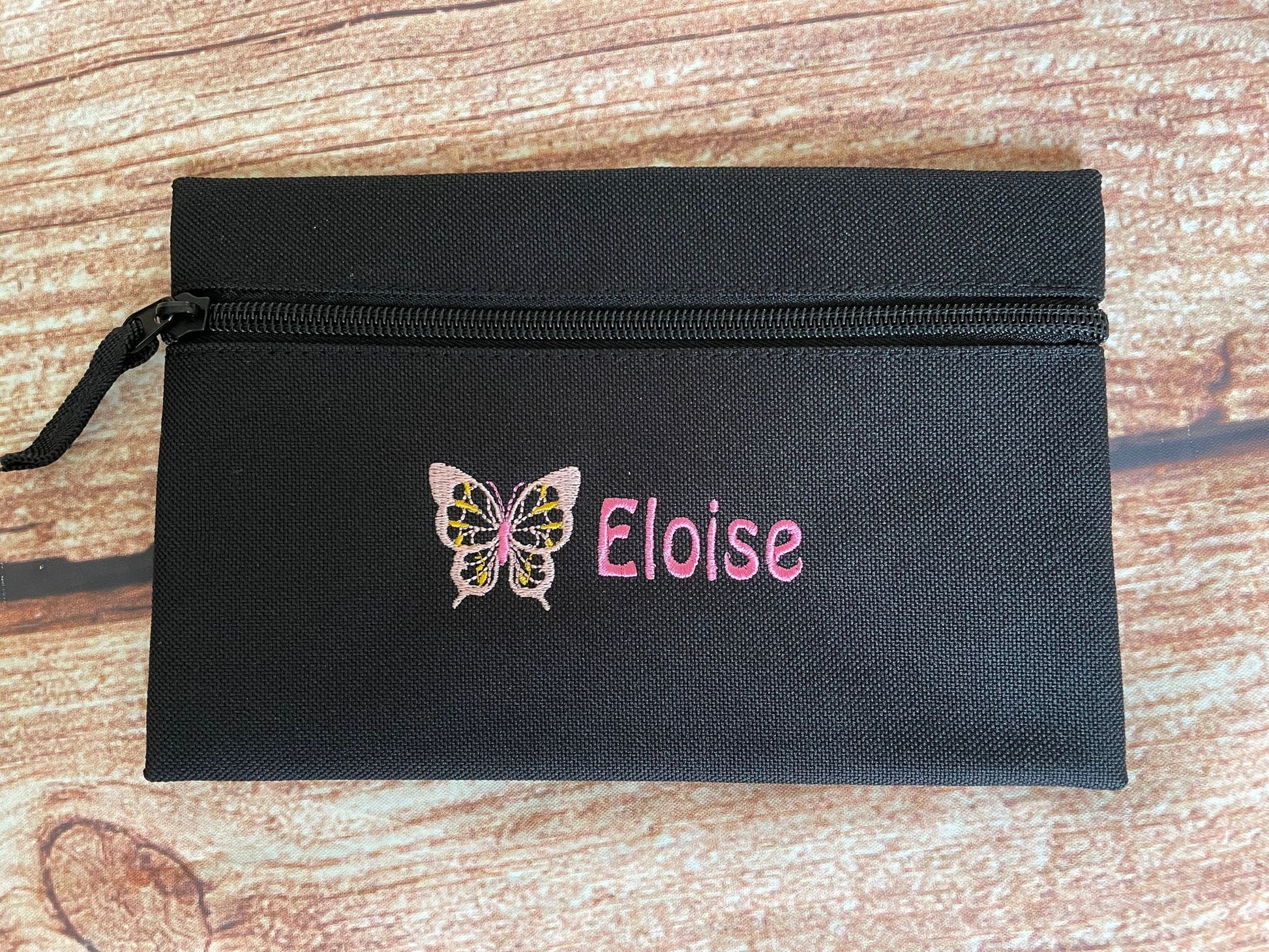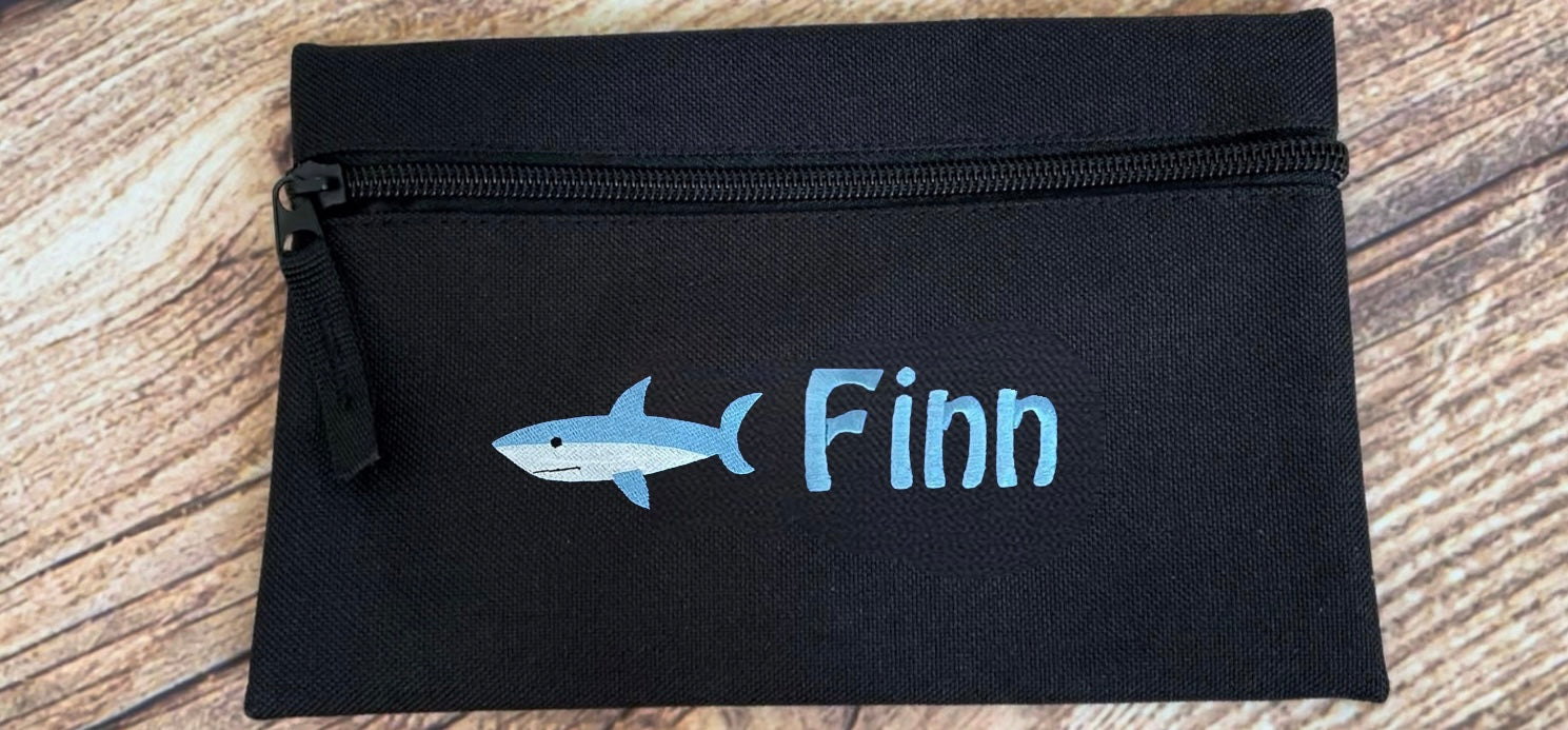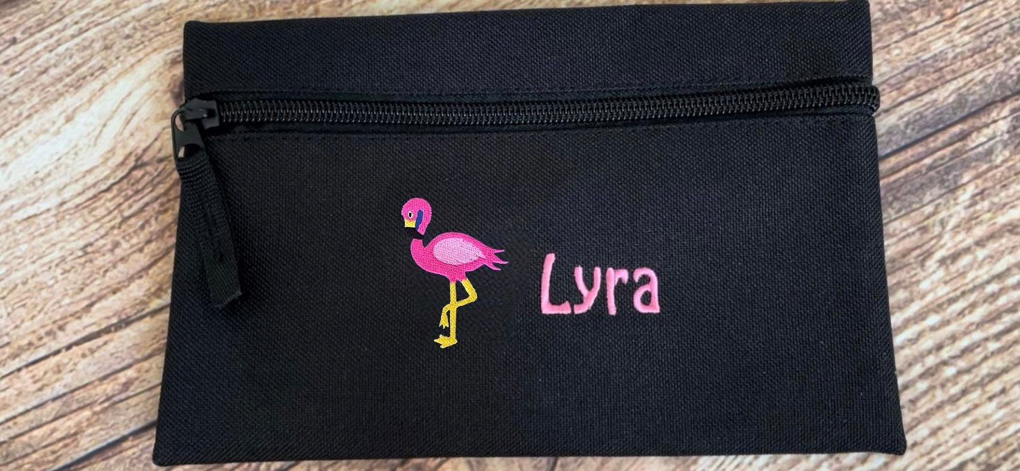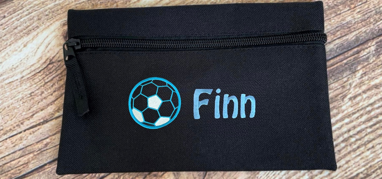 Pencil case personalised with embroidered name and choice of motif