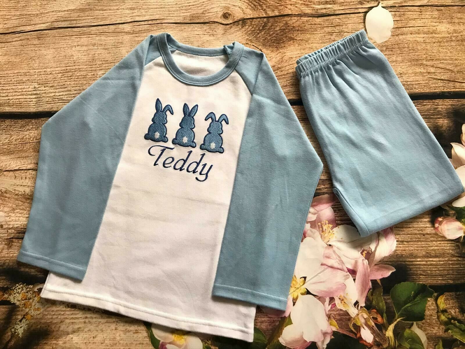 Personalised Easter Embroidered 100% Cotton Pyjamas, keepsake PJs