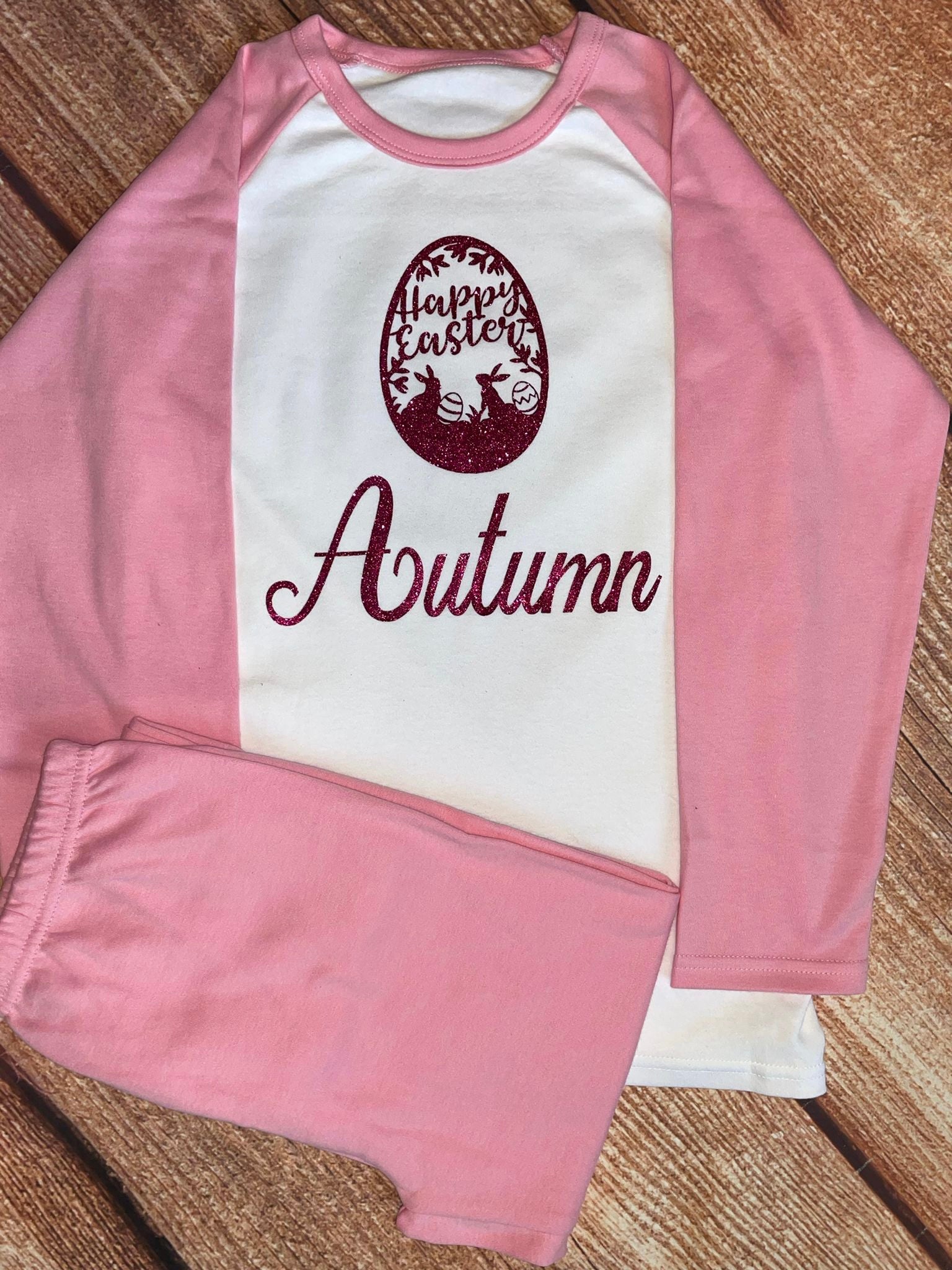 Personalised Easter Sparkly Printed Cotton Pyjamas, keepsake, Gift PJ