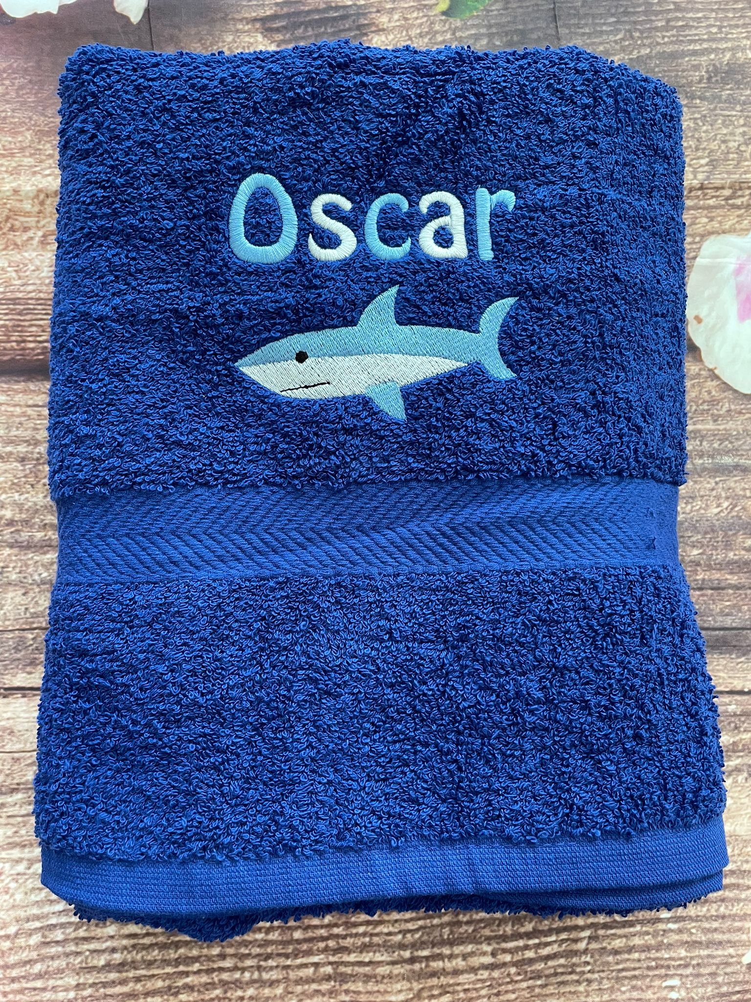 Personalised embroidered swimming or sports towel. Ideal gift // shark